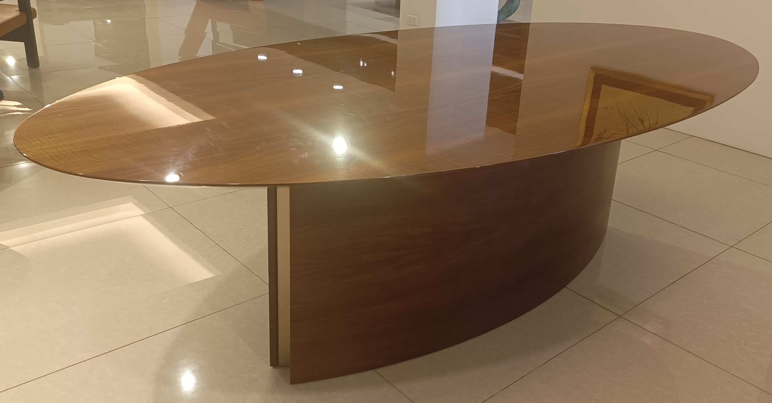 Material: High gloss medium dark stained walnut