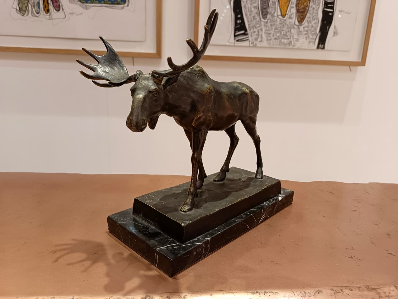 Media: Bronze moose sculpture, marble base