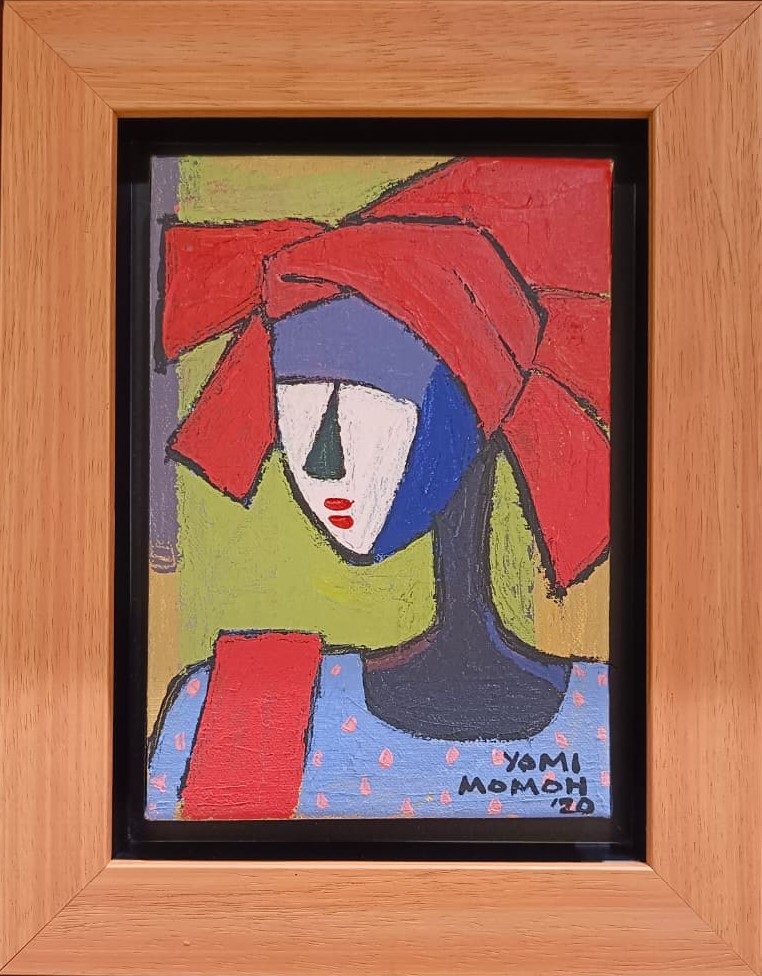 Yomi Momoh was born 1964 in Nigeria. He attended Ahmadu Bello University, Zaria graduating in 1989. He has since then worked as both a sculptor and painter. He sculpts in wood and fiber glass and paints in acrylic and oil. While his media may vary, his style is unmistakable, relying on simplicity in form and color to create strong visual images of everyday Nigeria. He has become a painter and sculptor of wistful Nigerian landscapes and people. The easy innocence of his scenes provide a backdrop for the exploration of the cultures and people he comes in contact with daily.