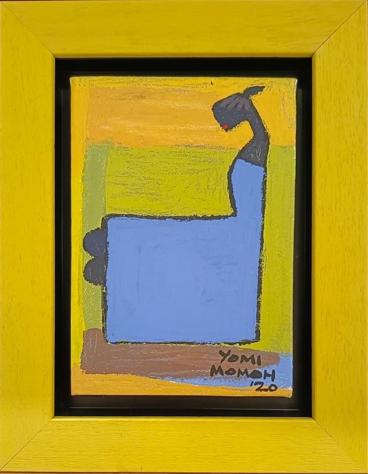 Yomi Momoh was born 1964 in Nigeria. He attended Ahmadu Bello University, Zaria graduating in 1989. He has since then worked as both a sculptor and painter. He sculpts in wood and fiber glass and paints in acrylic and oil. While his media may vary, his style is unmistakable, relying on simplicity in form and color to create strong visual images of everyday Nigeria. He has become a painter and sculptor of wistful Nigerian landscapes and people. The easy innocence of his scenes provide a backdrop for the exploration of the cultures and people he comes in contact with daily.