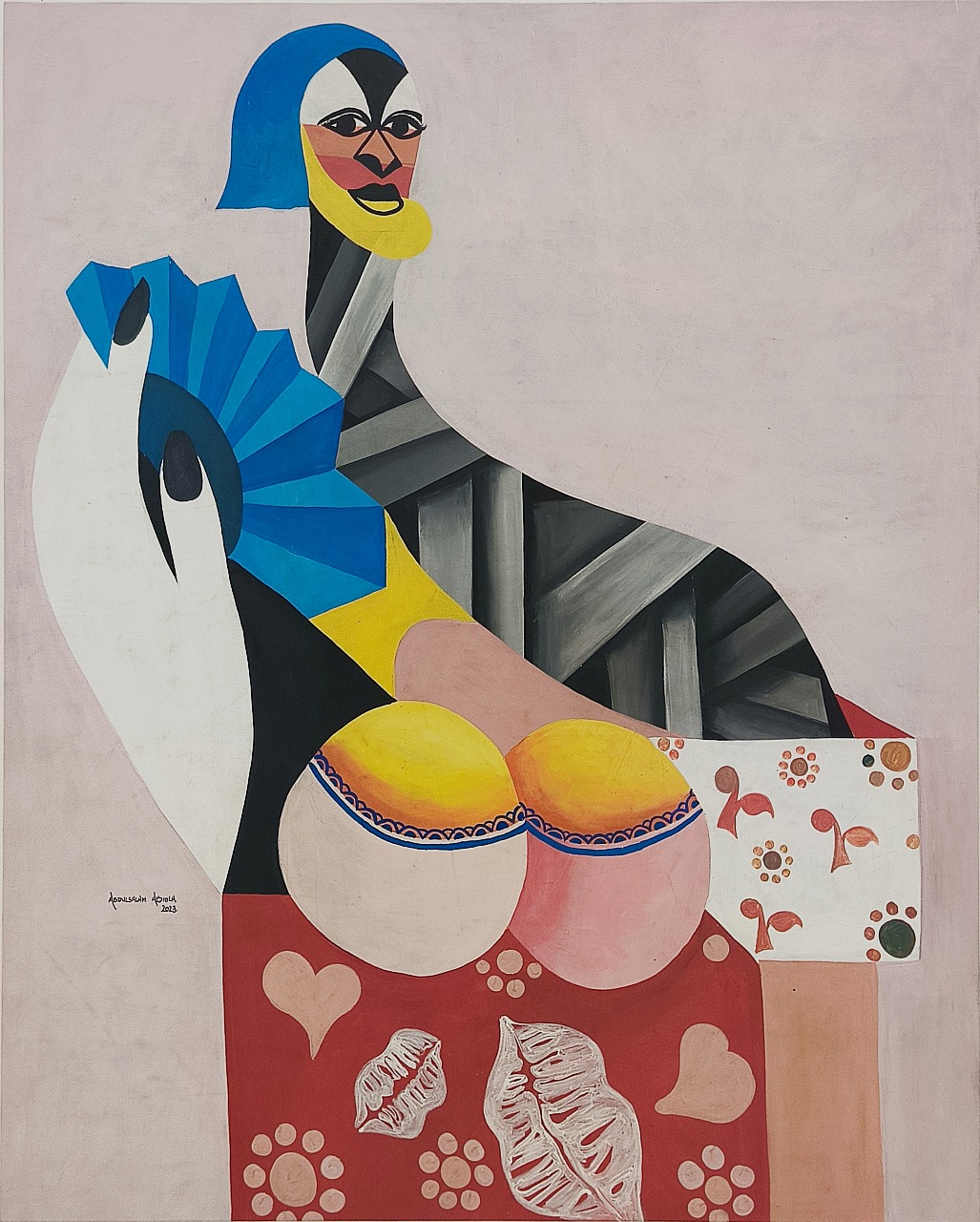 Collectible Painting| Pop Art | Acrylic on Canvas. Abdulsalam Abiola (born 1996) is a contemporary Nigerian visual artist known for his vibrant and expressive paintings. His work blends surrealism, expressionism, and cubism. He often uses bold, non-realistic colors and geometric forms to portray abstract figures and social His art explores daily social realities, human emotion, identity, and African life. Abiola has exhibited his works in various Nigerian galleries. Internationally, his work has appeared in galleries like Urbanist Art (Dubai). He has also received several awards during his academic career, especially between 2019 and 2022.